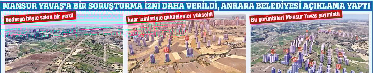 Aksine, Dodurga bölgesine verilen usulsüz imar artışının veto edilmesine ilişkin karar, bu soruşturmanın konusudur. Mülkiye müfettişi; daha önce de Mansur Yavaş hakkında soruşturma izni verilen başka dosyalarda görev almış, Gökçek ile bu konuda görüştüğü iddia edilmişti.”