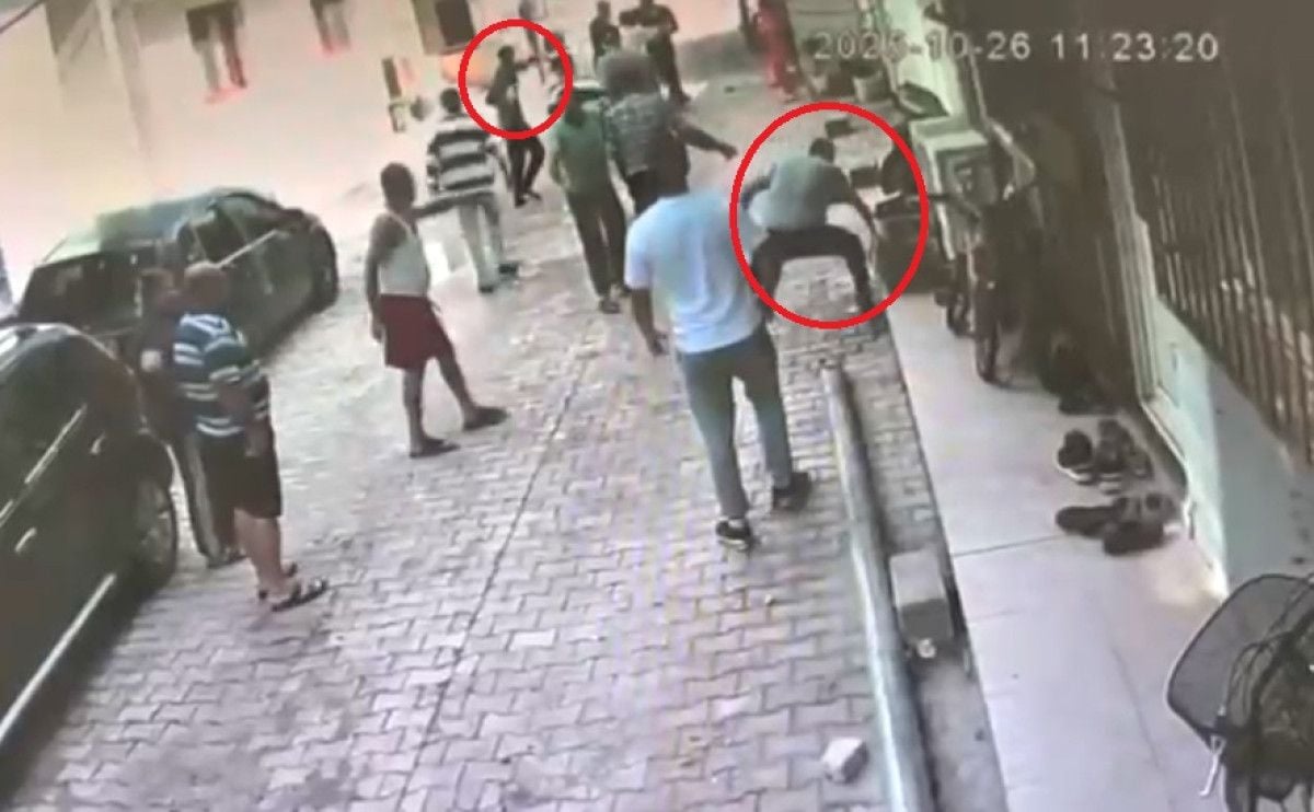 Kavgaya polis ekipleri müdahale etti ancak kaldırım taşları da kırıldı.