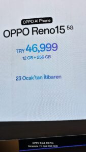 - OPPO Reno 15 5G (12 GB + 256 GB): 46.999 TL