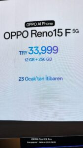 - OPPO Reno 15 F 5G (12 GB + 256 GB): 33.999 TL