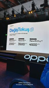 OPPO, Türkiye’de yeni Reno 15 serisini tanıttı. TeknoBurada.Net olarak katıldığımız bu etkinlikte, 23 Ocak itibarıyla satışa sunulacak telefonların fiyatları ve lansman dönemi için özel değişim teklifleri de duyuruldu. Türkiye’deki fiyatlar şu şekilde sıralandı: