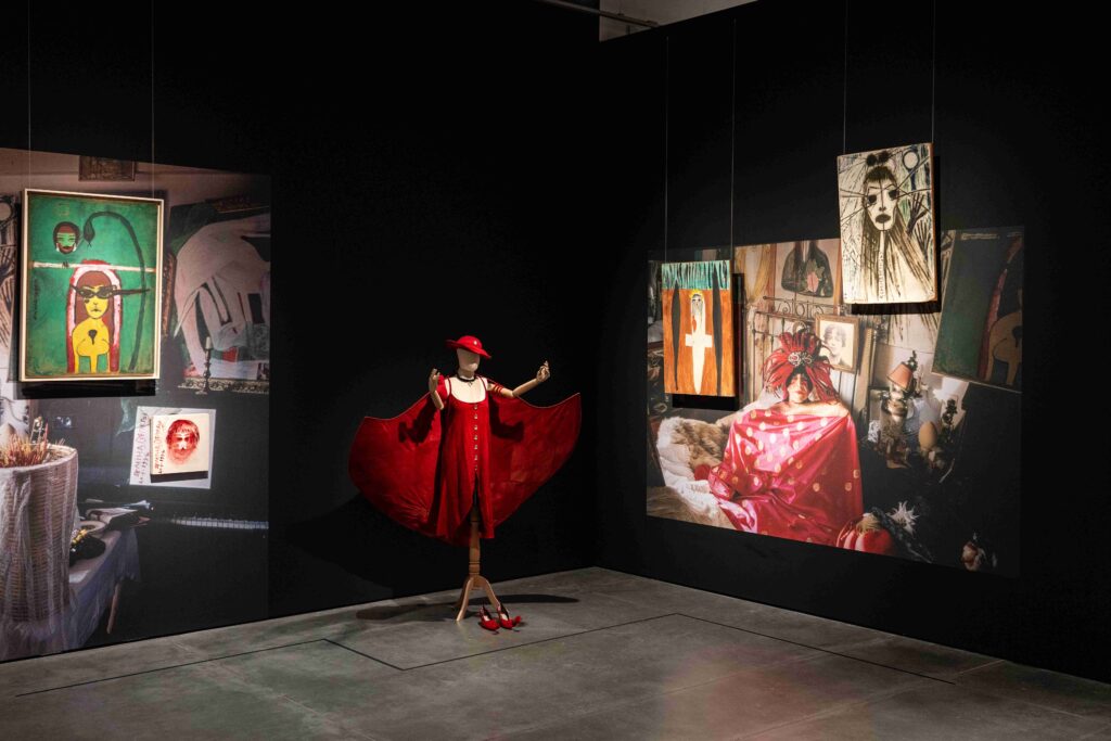 “Semiha Berksoy: Tüm Renklerin Aryası”, izleyicileri sanatçının sahneyle iç içe geçmiş yaşamına adım adım davet eden bir sergi sunuyor. Serginin merkezindeki Kırmızı Oda, Berksoy’un opera sahnesinde canlandırdığı Tosca, Salome gibi karakterlerin resimlerine odaklanıyor; bu dramatik figürler, sanatçının kimliği ve bedeni ile bütünleşerek anıtsal anlatılara dönüşüyor. Opera kayıtları, belgeseller ve arşiv malzemeleri ile desteklenen bu alan, sergi genelindeki akışkan yapıyla, ziyaretçilerin eserler arasında dolaşırken sahneye yeniden dönmelerine imkân tanıyor.